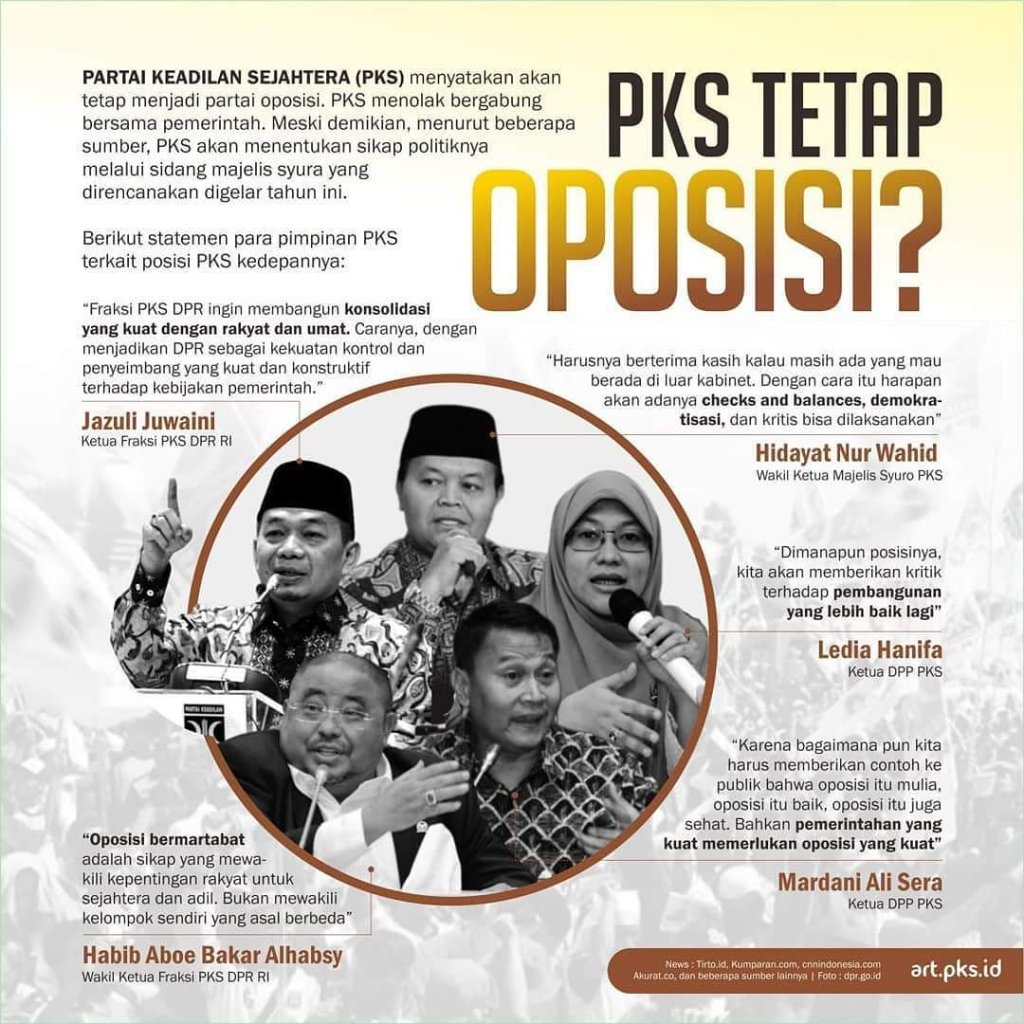 “Jangan ragukan sikap oposisi PKS. Sejak awal kami sampaikan oposisi hadir untuk menjaga demokrasi, menghadirkan check and balances agar pemerintahan tetap on the track berpihak kepada kepentingan rakyat. Kami juga ingin menjaga kehormatan partai-partai yang sejak awal berjuang mendukung Pak Jokowi. Fair kan?,” tandas Jazuli.